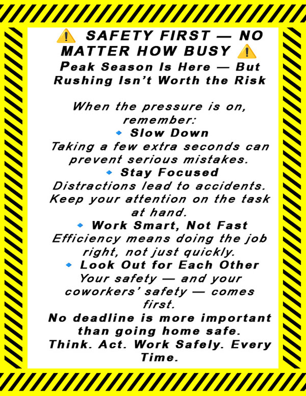Brought to you by EverGRO’s Team S.A.F.E reminders/tips for you: